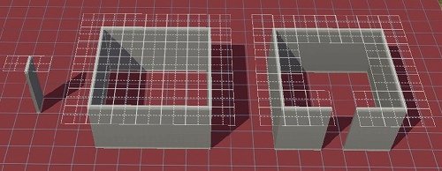 壁で囲まれた部屋の中であれば、階段設置時自動で階段に側壁ができる。